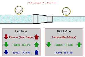 This environment has been created to allow students to look at how the size of pipes affects the speed and pressure of the fluid moving through the pipe.